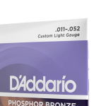 D'Addario was the first to use Phosphor Bronze in acoustic guitar strings back in 1974. Today, Phosphor Bronze is played throughout the world and considered to be the standard in acoustic strings, thanks to its beautiful sonic balance and tonal warmth. Our pioneering Phosphor Bronze acoustic guitar strings are precision wound with phosphor bronze wrap wire over a high-carbon steel core, providing tonal versatility suitable for all acoustic styles and musical genres. These 11-52 Custom Light gauge strings have slightly more volume and projection than Extra Light, while still being easy to play.
